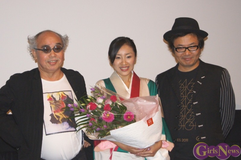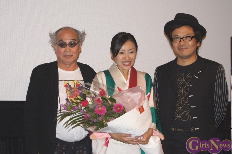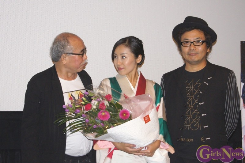 今日は神楽坂恵さんの30才の誕生日。上映後に花束を持って荒木経惟氏登場。