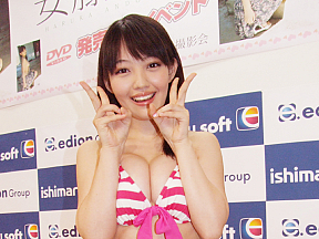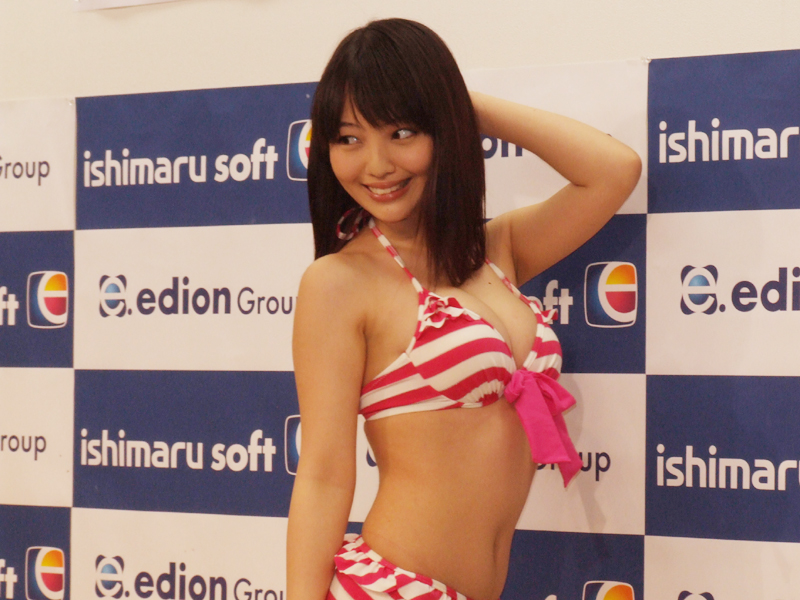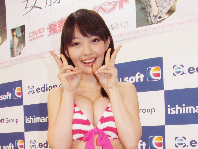 グラドルの安藤遥(19)さんが6月5日に東京・秋葉原の石丸電気ソフト本店でファーストDVD『遥、ずっと』(イーネットフロンティア)の発売記念イベントを行った。