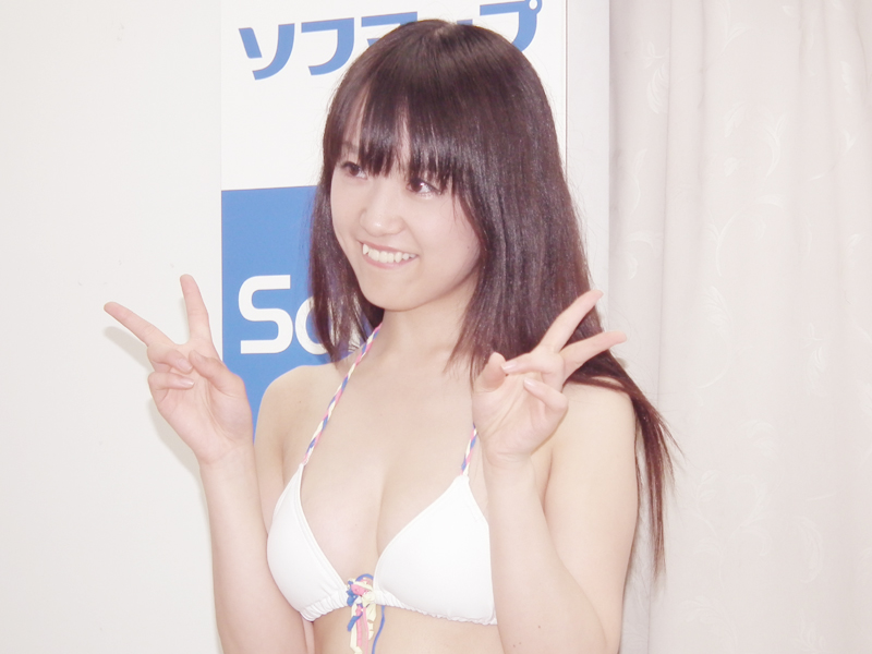 あどけない表情だが、胸は意外にFカップ。「このDVDのプロフィールにはEって書いてあるんですけど、Fになりました」と成長中。