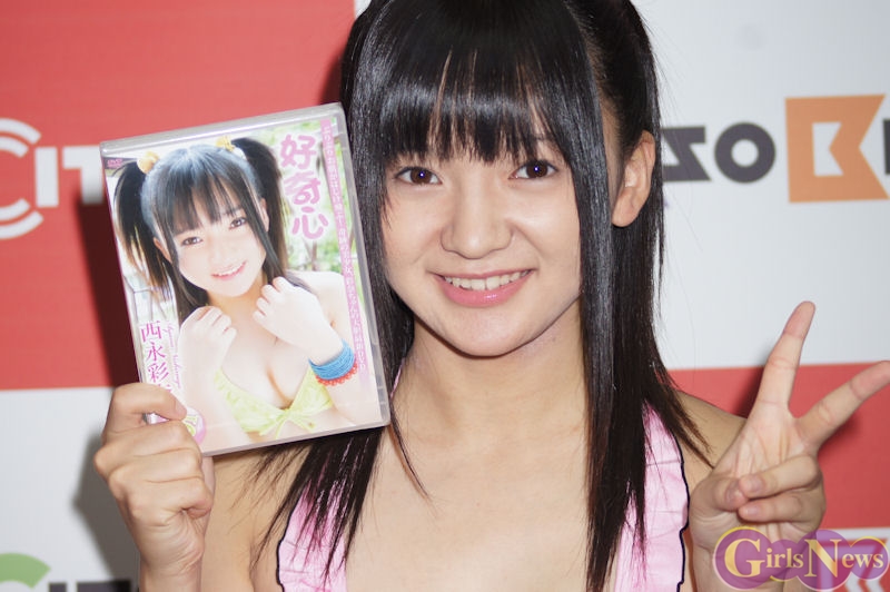 DVDの内容として西永彩奈さんは「いろんな衣装を着てるので、いろんな彩奈が見れると思います。浴衣とか制服とか水着とかスク水とかいろいろ見れます。」とアピール。