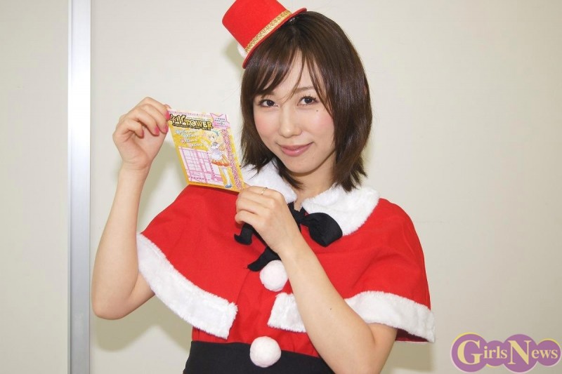 「1階でアイスを販売しています。各階にアイドル達がいてみなさんをお待ちしておりますので、ぜひ遊びに来てください。1月25日に私の新作DVDが発売します。そしてミスFLASH2012候補にエントリーしていますので投票をお願いします」とコメントした。