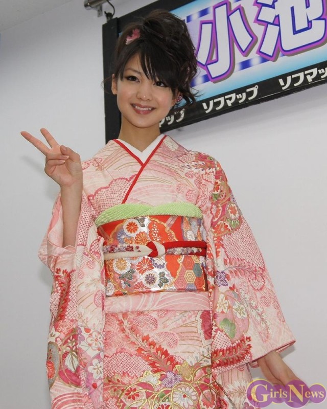 1月7日、テレビ朝日系『海賊戦隊ゴーカイジャー』でゴーカイピンク/アイム・ド・ファミーユ役で活躍中の小池唯さんが新作DVD「ハワイでグラビアしました。」(ワニブックス)発売記念イベントを秋葉原で行った。今年成人式を迎える小池唯さんは振り袖で登場。限定500人のファンに振り袖姿を披露した。