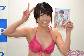 DVDの内容は「畳の上で空手のシーンは柔道着を着ました。忍者のコスプレがかっこいい。刀を振り回しました。現役高校生なので制服のシーンもあります。水着もコスプレいっぱいです」と話した。