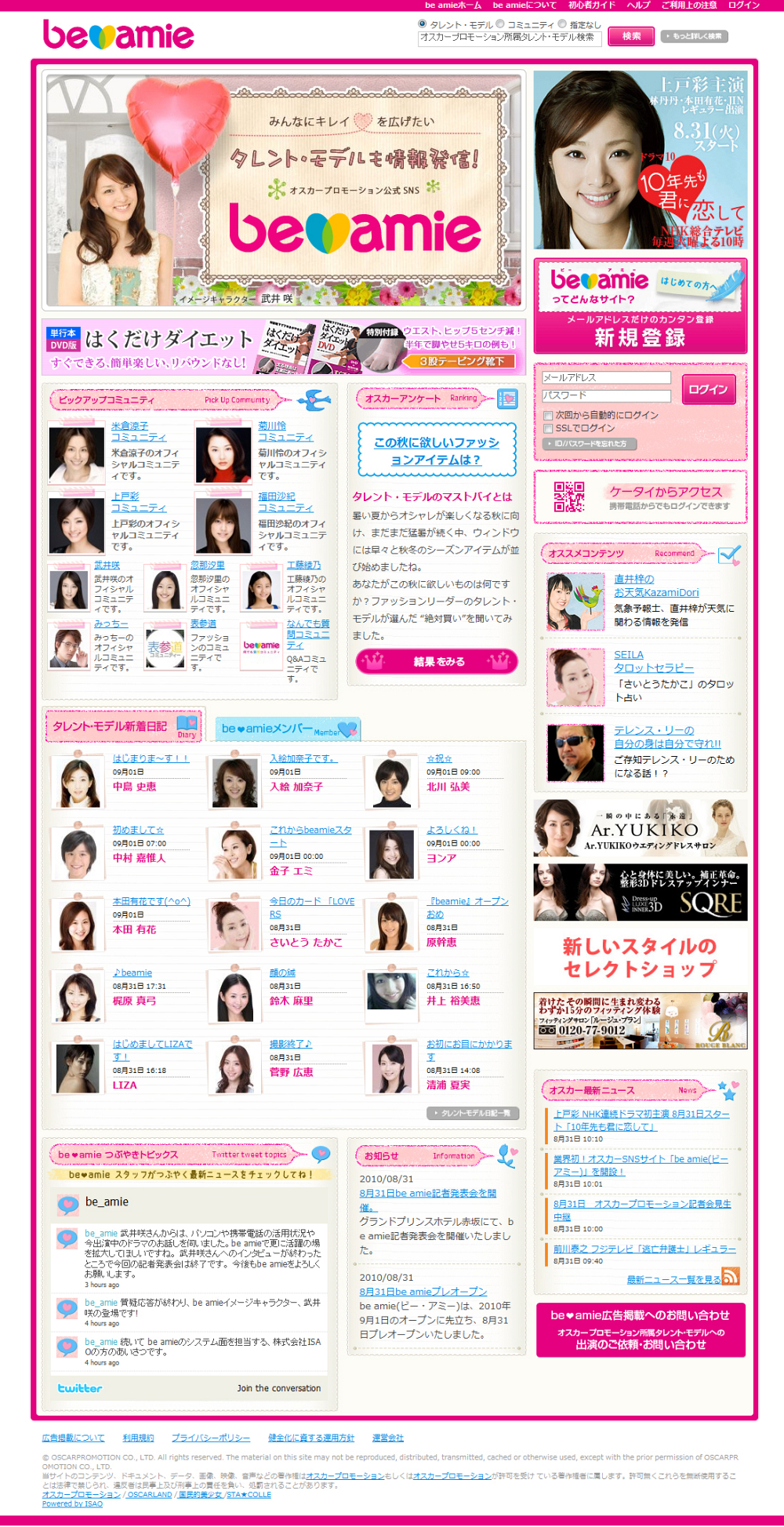 2010年9月1日より、オスカーグループでは世界に発信する新しいSNS 『be amie(ビーアミー)』を開設。イメージキャラクターには、武井咲が起用される。