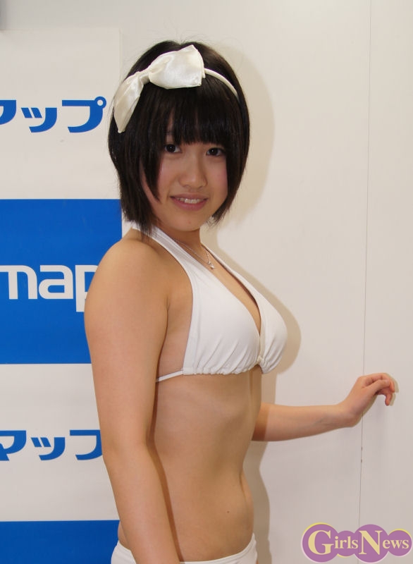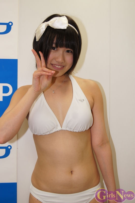 お気に入りについて質問すると、「チュッパチャップスの飴を2つ同時に舐めたシーンが楽しかった。ジャケットになっている水色の水着がお気に入りです。」と笑顔で語っていた。
