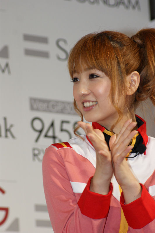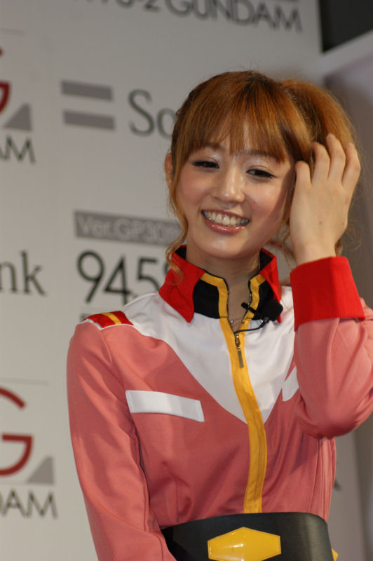 小倉優子ちゃんは「ガンダムの携帯を持っていると、その話題で盛り上がって、もしかしたら良い出会いがあるかも!」と語っていた。