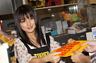 このイベントは急遽オフィシャルサイトで告知され、平日の昼間にも関わらずファンが大集合。真野恵里菜ちゃんが実際に7階のレジに立ち、一人ひとり笑顔で接客。9月15日発売の8枚目のシングル「元気者で行こう!」のCDをファンに手渡しました。