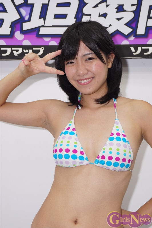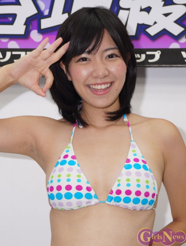 お気に入りのシーンについて「チェックの水着が一番カワイイです。一番最後に真衣ちゃんと絡むシーンがあるのでそこを見てくれたら嬉しいです。」とアピールしていた。