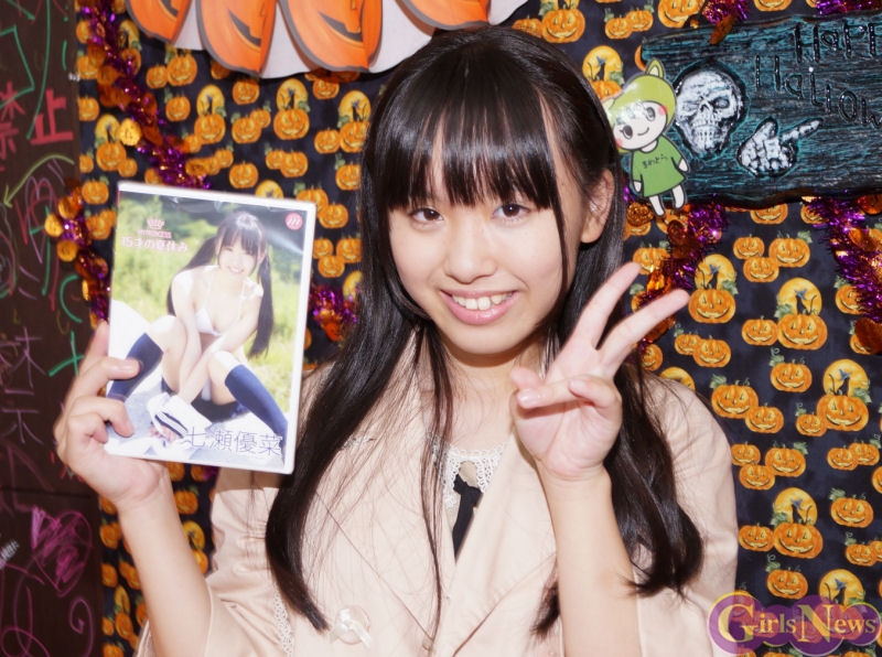 10月20日、現役女子中学生グラビアアイドルの七瀬優菜(ななせ ゆうな)さんの1stDVD「15才の夏休み」(ミルフィーユ)の発売を記念し秋葉原でイベントが行われた。