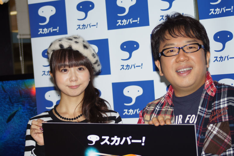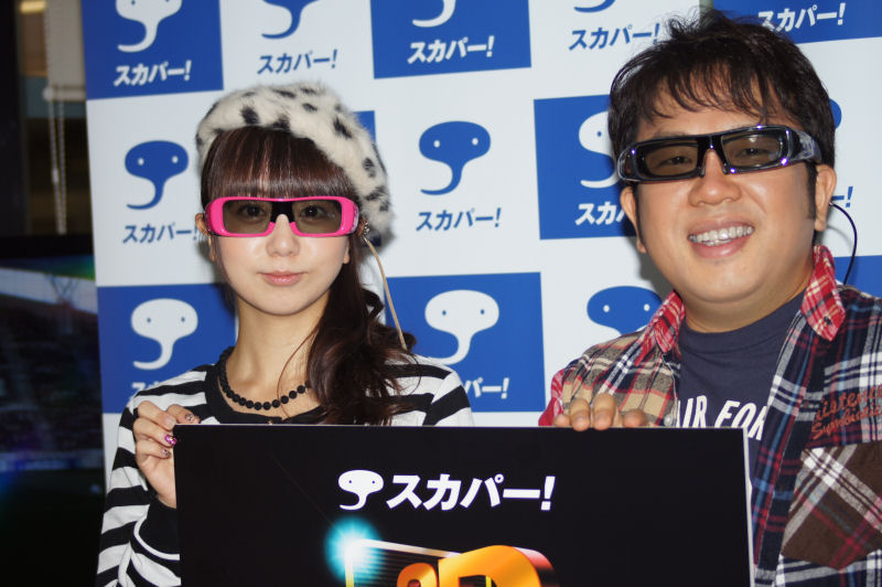 9月30日、タレントの福田萌ちゃんとお笑い芸人の天野ひろゆきさんが新宿駅西口コンコース内にオープンした「スカパー! 3D Cafe」のオープニングイベントに出席した。