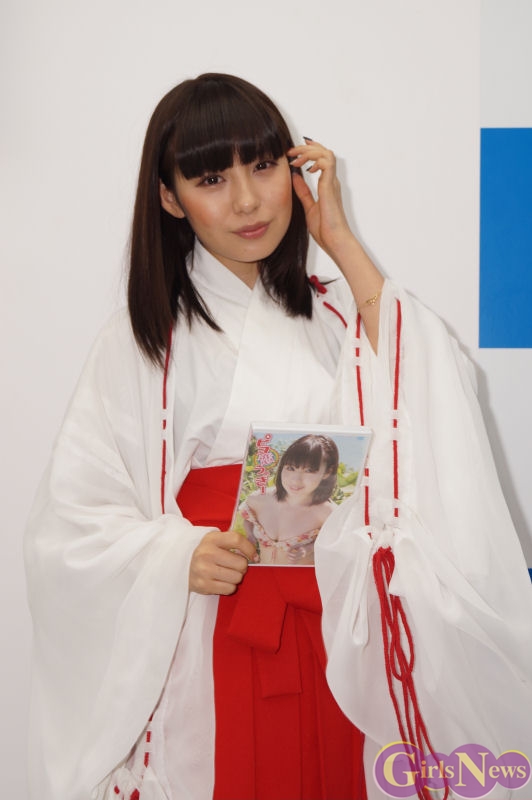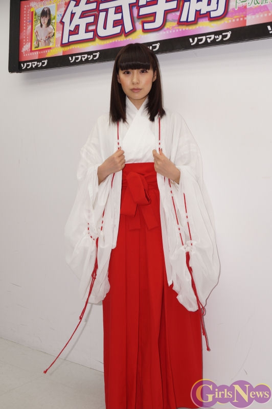佐武宇綺さんは「はじめて着たんですけど、私結構コスプレしてる方なんですけど、巫女さんだけは無くて、今日は親近感を持って楽しみたいと思います。」と語り報道陣にお祓いを行うなど、いつもと違う、おしとやかな佐武宇綺さんを見せていた。