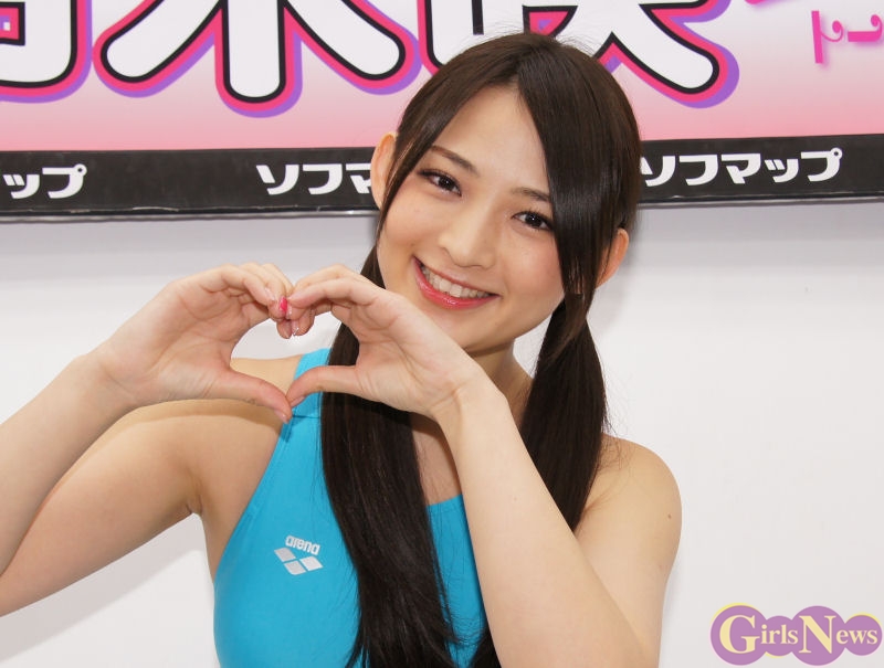 鈴木咲さんは前回のイベントと同様、この日も競泳水着姿で登場「前回とは違う鮮やかな色に挑戦してみました。」を語り、「今、頑張ってダイエットしているんですけど、なかなか腰周りのお肉が取れなくて困ってます。目標は5キロ減です。」と現在はダイエットをしていることを明かしていた。