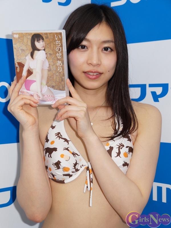3月20日、清楚系美尻アイドルのいちのせありさんが新作DVD「ありー My Love」(イーネット・フロンティア)発売記念イベントを秋葉原で行った。