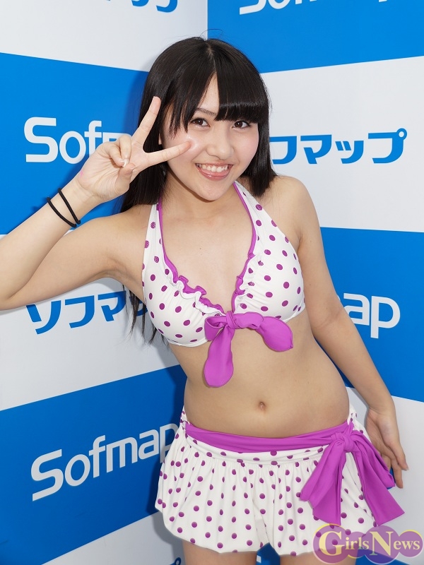 内容は「笑顔の私がたくさん見れます。ジャケットはネコで初めてネコのコスプレをしました。本格的で楽しかったです。ネコになりきっています。現役の中学生なので制服は見どころです。海辺の白いワンピースのシーンは清楚です。エメラルドグリーンの水着のシーンでは海辺ではしゃいでいます。そして体操も見れます。水色の水着でバランスボールのシーンが見どころです」と見どころを話した。