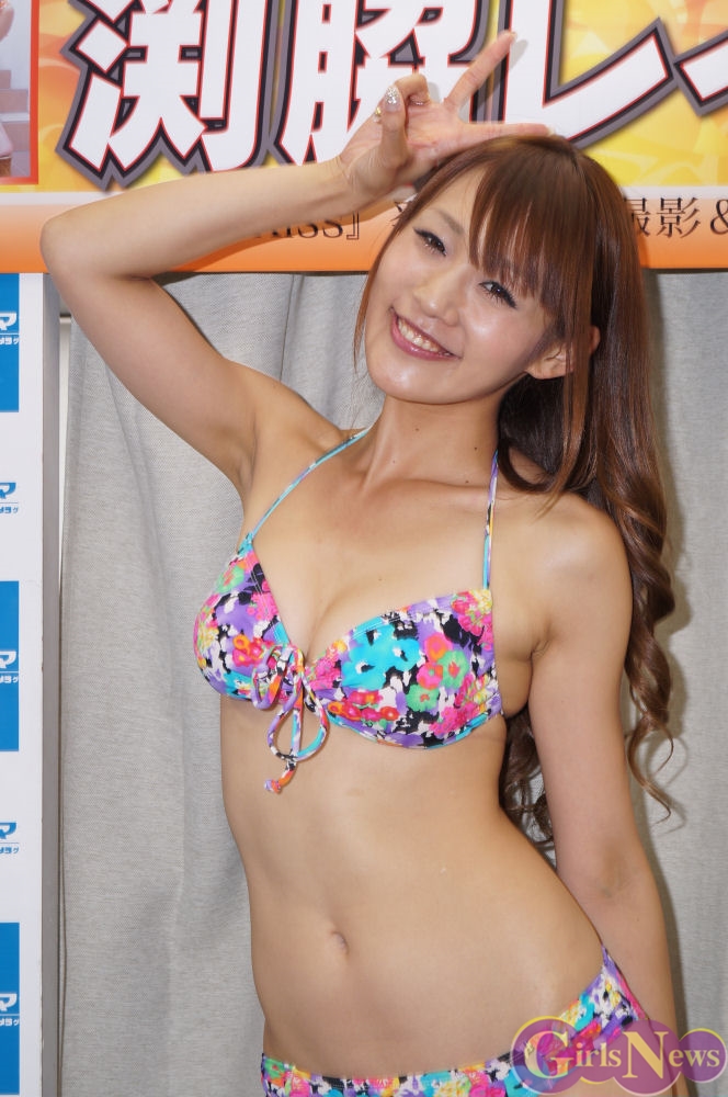 6月8日、グラビアアイドルでレースクイーンとしても活動中の渕脇レイナさんの1stDVD「Kiss」(オルスタックソフト)の発売を記念し、秋葉原のソフマップモバイル館でイベントが行われた。
