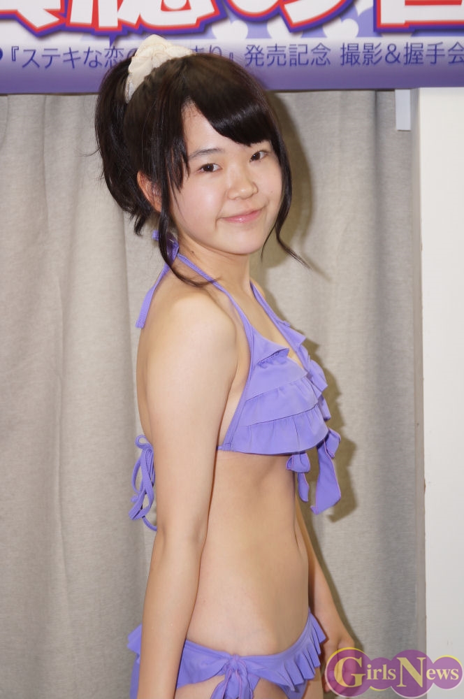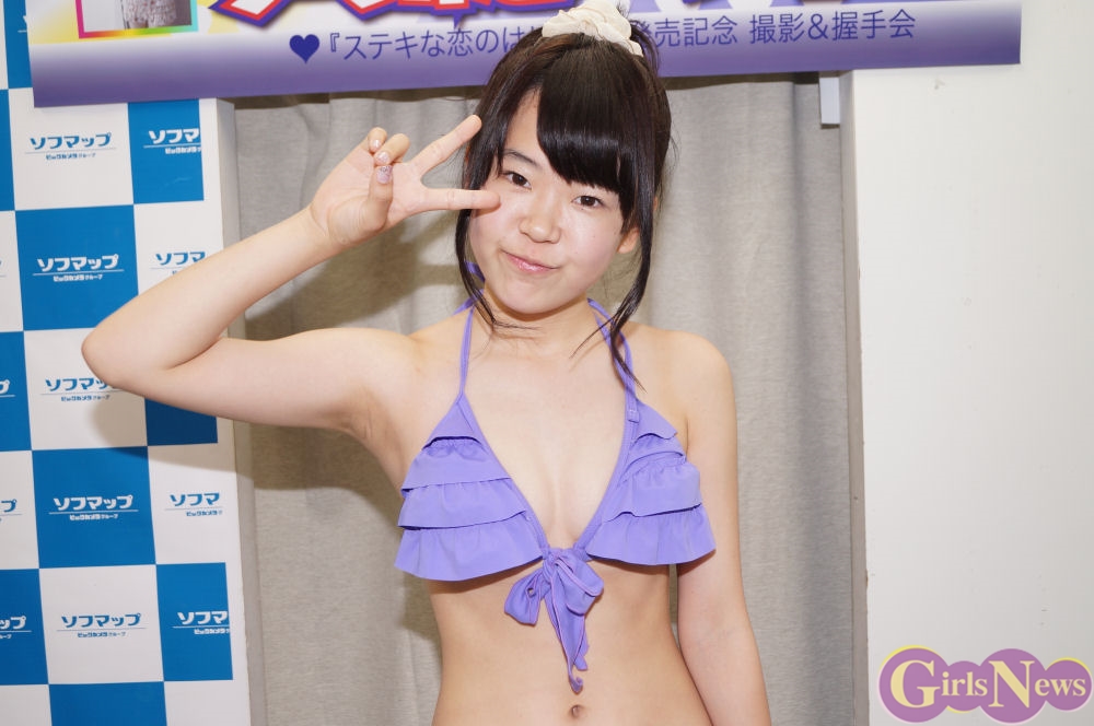 初めてのグラビアDVDの撮影について「前の日まで緊張してて、初めてみたら周りのスタッフさんもすごく良い人ばかりで楽しく撮影ができました。学校で撮影があって、普段他の学校に行くことって全然無いので、(普段通ってる学校以外の)学校で撮影することに違和感があって、それがすごく面白かった。あとはホテルで撮影した時は温泉がすごく気持ち良かったです。」と感想をコメント。