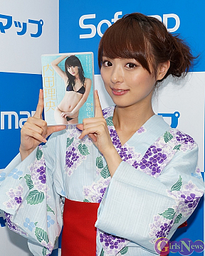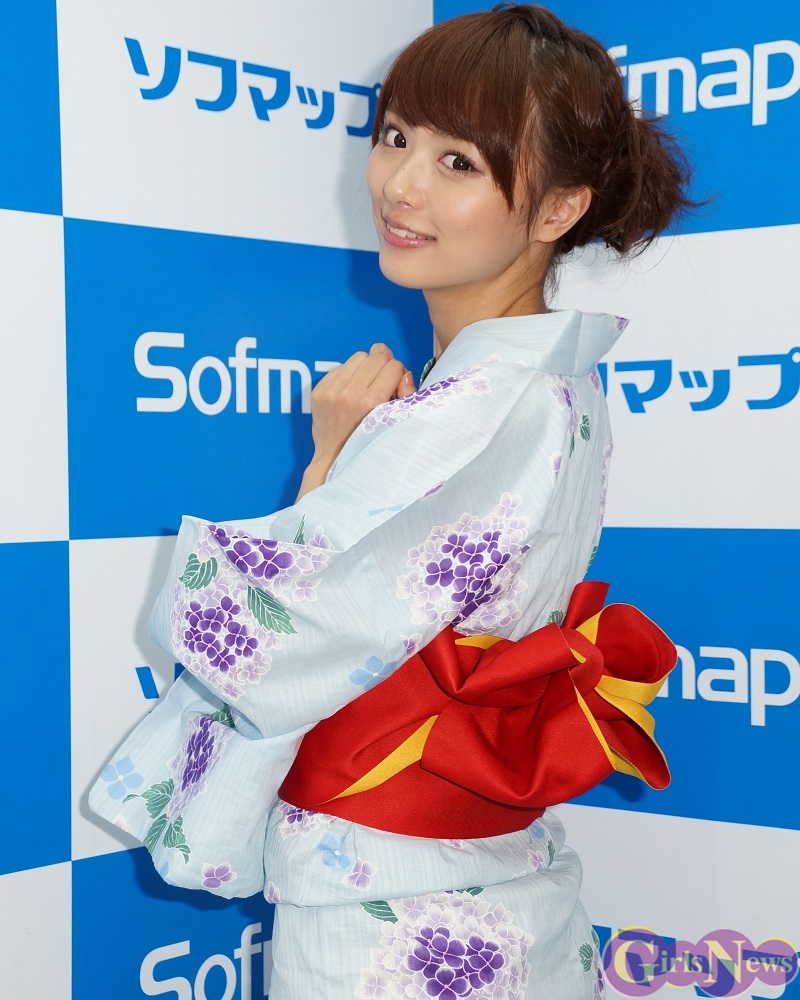 7月13日、グラビアアイドルの内田理央さんの7枚目のDVD「かのじょ。」(エアーコントロール)の発売を記念して秋葉原ソフマップアミューズメント館でイベントが行われ、涼しげな浴衣姿で登場した。