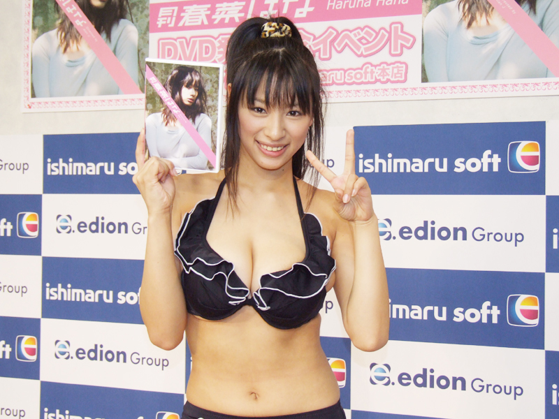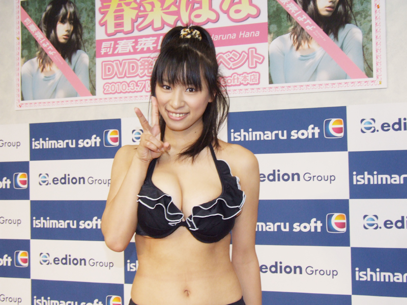 月刊チャージャー『サラリーマンのための水着ヨガ教室』3代目モデルの春菜はな(21)が3月7日にDVD『月刊 春菜はな』(イーネットフロンティア)の発売記念イベントを東京・秋葉原の石丸電気ソフト本店で行った。