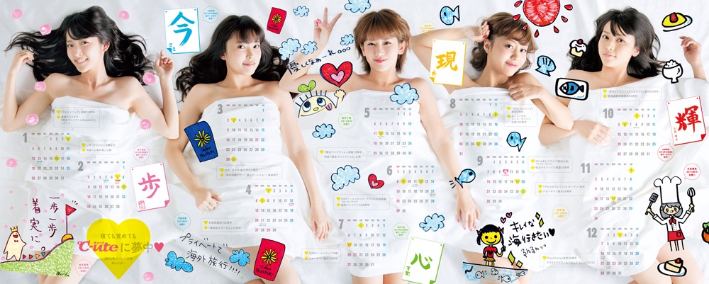 巻頭・巻末グラビアをジャックし、さらに付録として広げると全長60㎝以上にもなる、超横長で絵巻物のような「℃-ute夢中カレンダー」が付いてくる!このカレンダーには、メンバーの誕生日や「℃-uteの日」など、今年開催される重要なイベントが月毎に書かれているので必見!