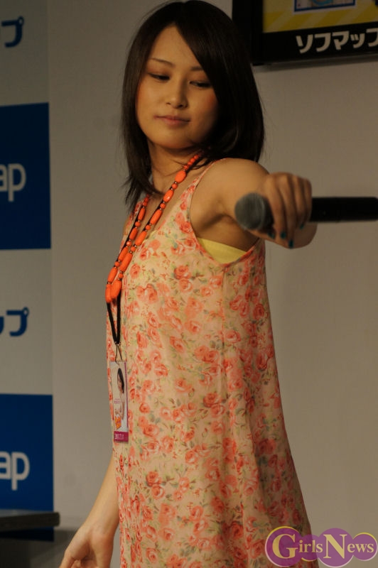 秋山ゆりかさんは「今回の作品はカラフルな水着で髪の毛もショートカットで元気いっぱいです。是非(前作と)見比べて欲しい。」とアピールしていた。