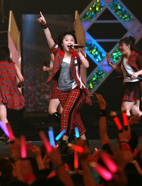「ダンスのスキルアップに専念したい」と10月に卒業を発表した鞘師さん。モー娘。メンバーとして最後の武道館公演は、『Oh my wish!』からスタート。冒頭から、その迫力あるダンスとボーカルで見る者を圧倒した。2曲目の『君の代わりは居やしない』で、メンバー全員が、観客席にせり出したセンターステージに移動すると場内はヒートアップ。