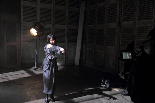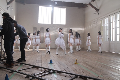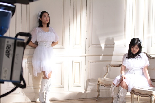 ソロリップシンクの撮影が終わった後は、セットチェンジをして2人1組になってのグループイメージ撮影に移行。窓や硝子戸、ソファー、鏡などのセットを使用しての撮影だが、全てのアイテムが“白”基調になっており、メンバーの純白の衣装とあいまって、独特の世界観を醸し出している。そしてここでもまた、表情だけでの演技が求められることに。