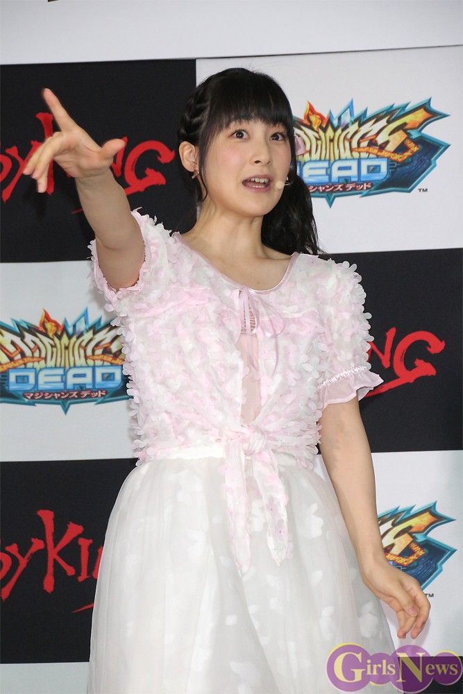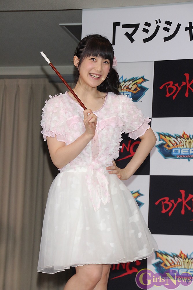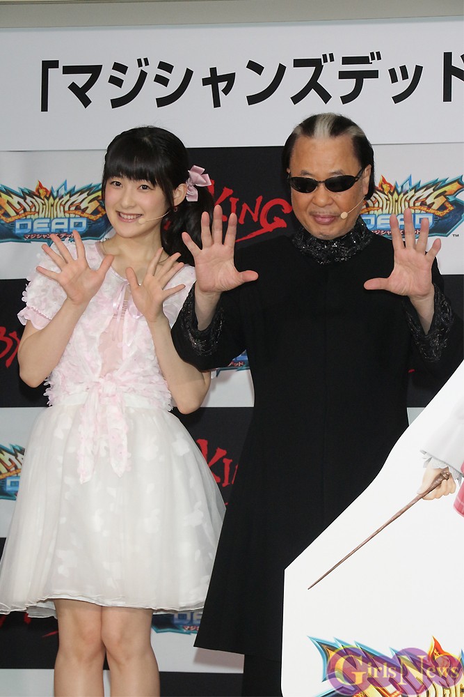 カントリー・ガールズの嗣永桃子が27日、秋葉原で行われた新型アーケードゲーム『マジシャンズデッド』のセレモニーイベントに、超魔術師のMr.マリックとともに出席した。