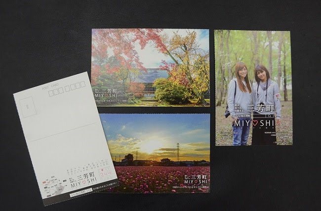 三芳町広報大使を務める先輩の吉澤ひとみさんとともに、アシスタントを務めている金澤さんの二人が登場するAR絵はがき。これは埼玉県内初の試みで、スマホをかざすとAR(拡張現実)で町のCM が見られるというもの。町内の風景写真(多福寺・コスモス畑)と吉澤さん、金澤さんが公園で撮影した写真を絵はがきにしている。年賀状や暮れの挨拶用に活用してもらうことで、 住民の手で三芳町を全国にPRしてもらうという狙いがある。