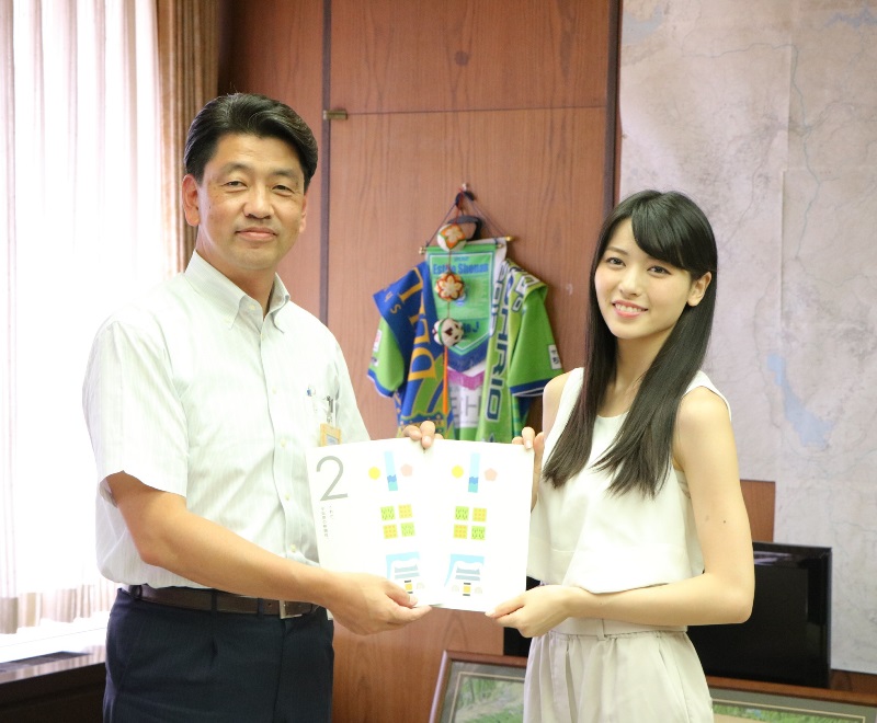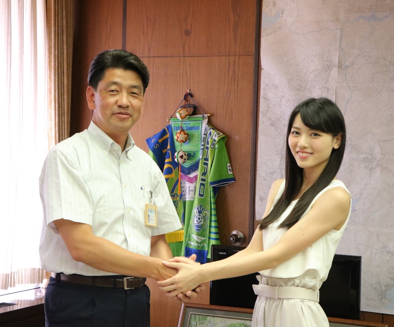 元℃-uteリーダーの矢島舞美さんが24日、神奈川県小田原市役所に赴き、加藤憲一市長を表敬訪問。小田原市と、矢島さんが所属するアップフロントグループが共催し、10月9日に開催する「遊ぶ。ふれあう。体験する。SATOYAMA&SATOUMI 秋キャンプ in 小田原」イベントの PRを行った。
