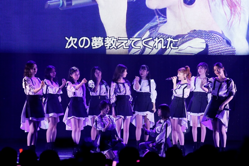 続くブロックでは最新曲「私を創るのは私」から「マナーモード」で会場を一気に熱く盛り上げ、少人数ユニットでの楽曲披露へ。また、中西がイントロの関西弁アナウンスを繰り出しての「ヤッタルチャン」は中西・川村文乃・船木結の 3 人で披露となった。「交差点」では中西を全員で囲んで歌う形がとられ、歌唱しながら涙をこらえるメンバーも出てくる中で会場から拍手と声援が湧きおこった。「豊洲 PIT、ひとつになってラストいきます!」という中西の掛け声から、本編終盤では中西のイントロモノローグによる「人生、すなわちパンタ・レイ」「恋ならとっくに始まってる」と攻めのナンバーを連発。「大器晩成」で会場の大合唱を呼び起こしながら最後まで突っ走った。