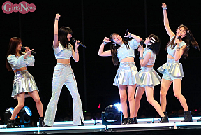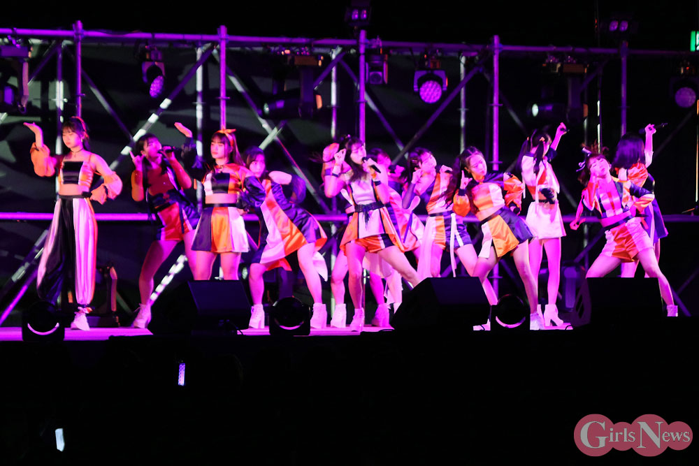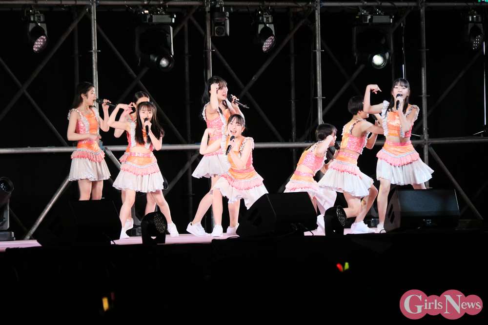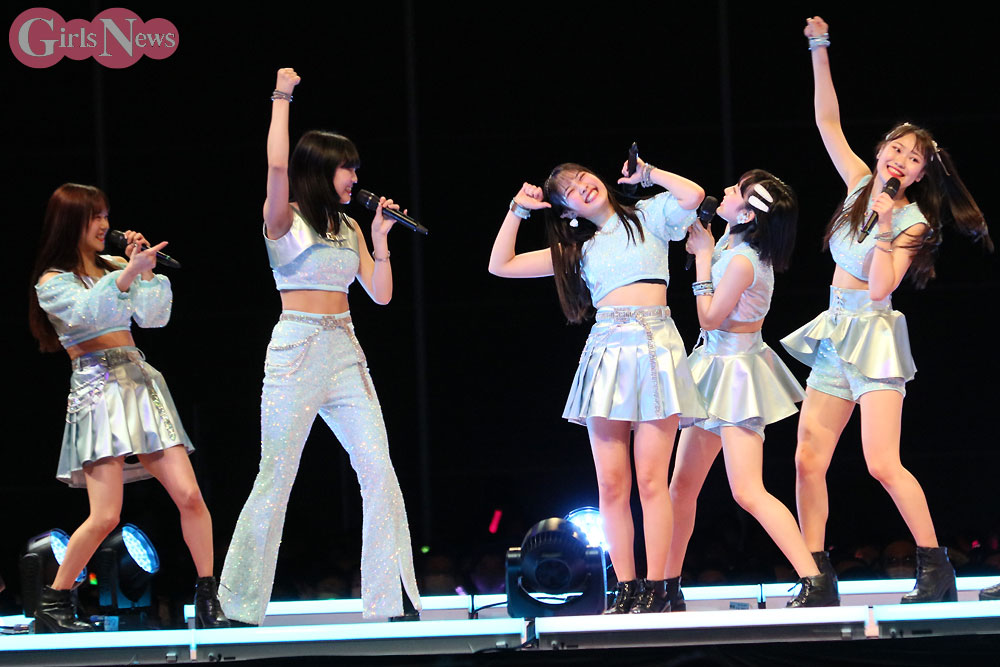 計4回の公演はそれぞれメインとなるグループが異なり、初回となる2日の昼公演は、Juice=Juiceがメインアクトを務めた。オープニングを『Borderline』で飾ると、リーダーの植村あかりさんが挨拶で、メンバーの有澤一華が新型コロナウイルス感染のために欠席したことを報告。有澤さんと同期で、初めて「ひなフェス」に参加した入江里咲さんは、「一華の分パワーも出せるようにがんばります!」と意気込んだ。
