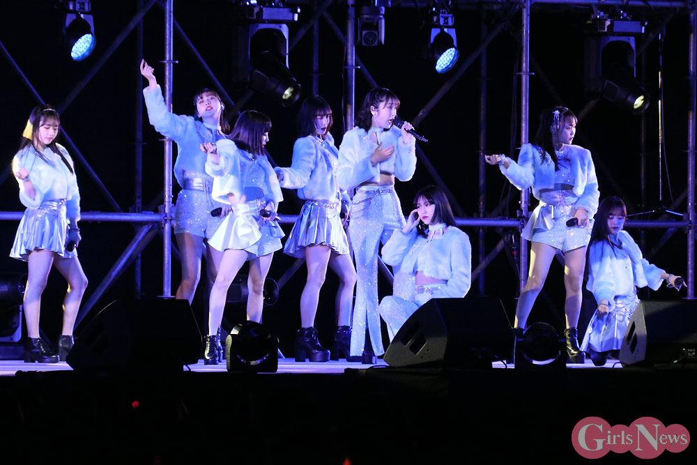 終盤では、再びJuice=Juiceが登場。4月20日発売のアルバム『terzo』からの新曲などに続いて『Magic of Love(J=J 2015Ver.)』を披露し、曲中では入江里咲さんに向けて「ここだよ、りさち!」とメンバーがファンに代わってコールする一幕も。この曲は、昨年12月にJuice=Juiceを卒業した金澤朋子さんに向けて「ここだよ、朋子!」とファンがコールすることが定番となっていた曲だ。感染症対策のために観客は発声が禁止されていたが、新しいメンバーにコールが継承されたことに、ファンは得も言われぬエモさを感じているようだった。