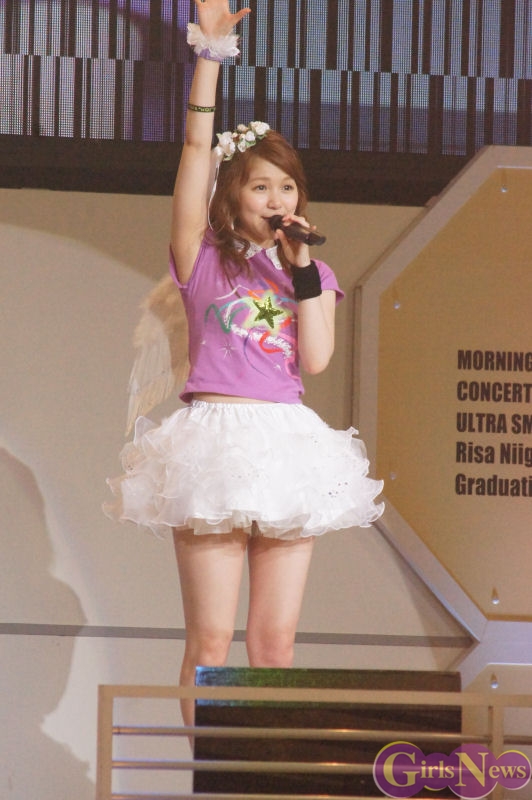 私は今日でモーニング娘。を卒業しますが、モーニング娘。のメンバーであったことを誇りに感じながらそして、誰よりもモーニング娘。のファンで居続けたいと思います。モーニング娘。大好き!