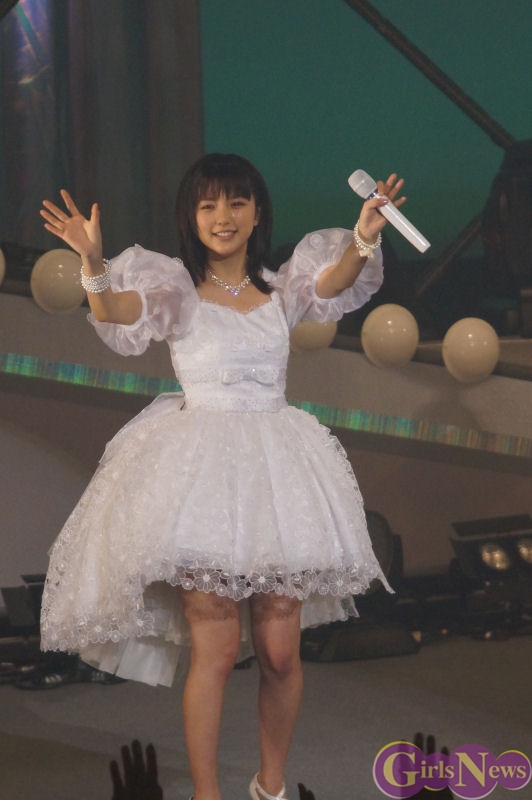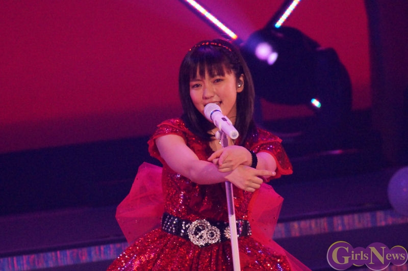 アンコールでは、これまで赤一色だったサイリュームが、一面真っ白のサイリュームで満たされる中、真野恵里菜さんは純白の衣装で登場。