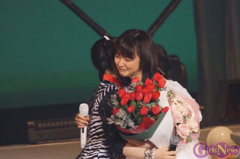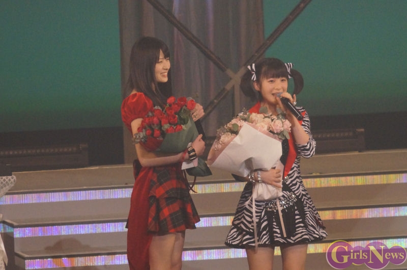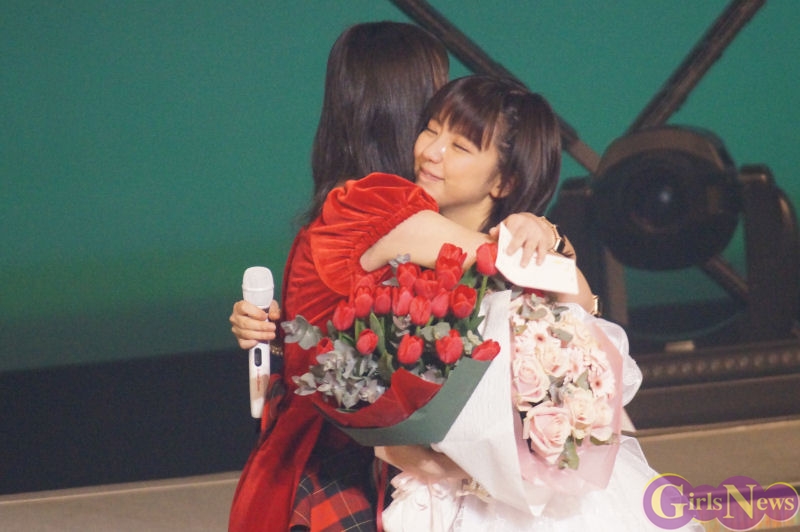嗣永桃子さんは「真野ちゃんVTRではごあいさつできたんだけど、どうしても真野ちゃんが大好きすぎて直接卒業おめでとうと言いたくて2人で駆けつけちゃいました。」と語り、