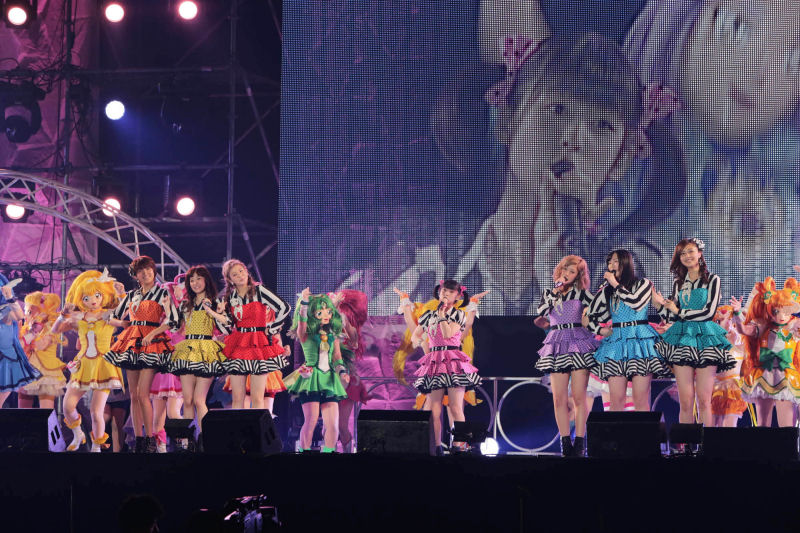 その後、なんとBerryz工房とプリキュアオールスターズで「ギャグ100回分愛してください」を披露。華やかなステージにファンのボルテージは最高潮。