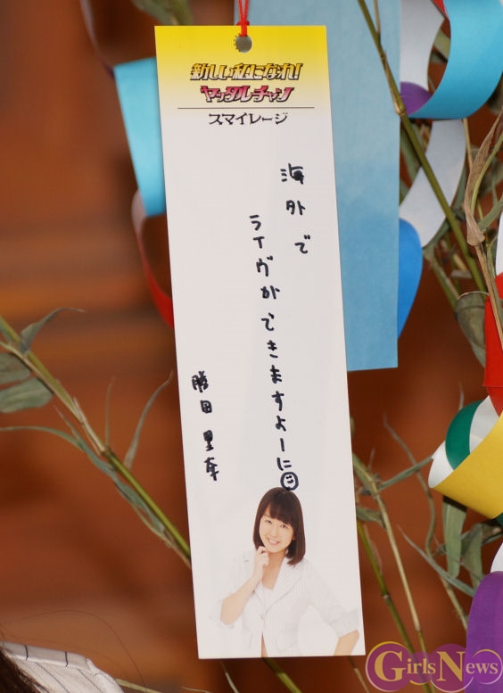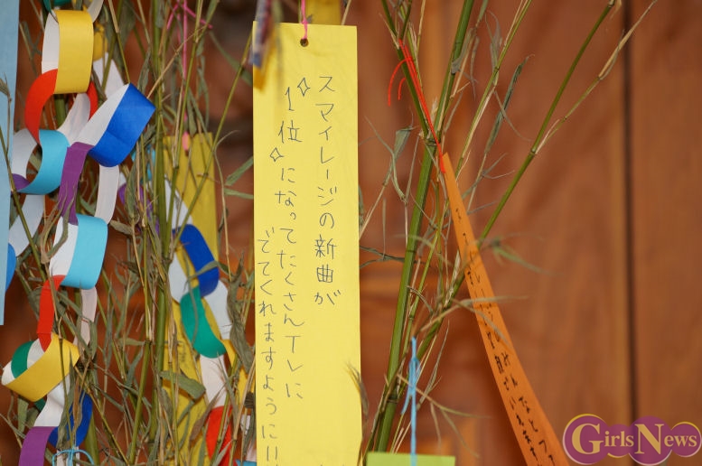 七夕の前日ということで、ファンの願い事が書かれた短冊がつるされた笹がステージに登場しメンバーが読み上げる一幕も。「スマイレージみたいなアイドルになりたい」「スマイレージが世界一のアイドルになりますように」「スマイレージのみんなとファンのみんながずっと笑顔でいられますように」など思いの詰まったものがよせられていた。