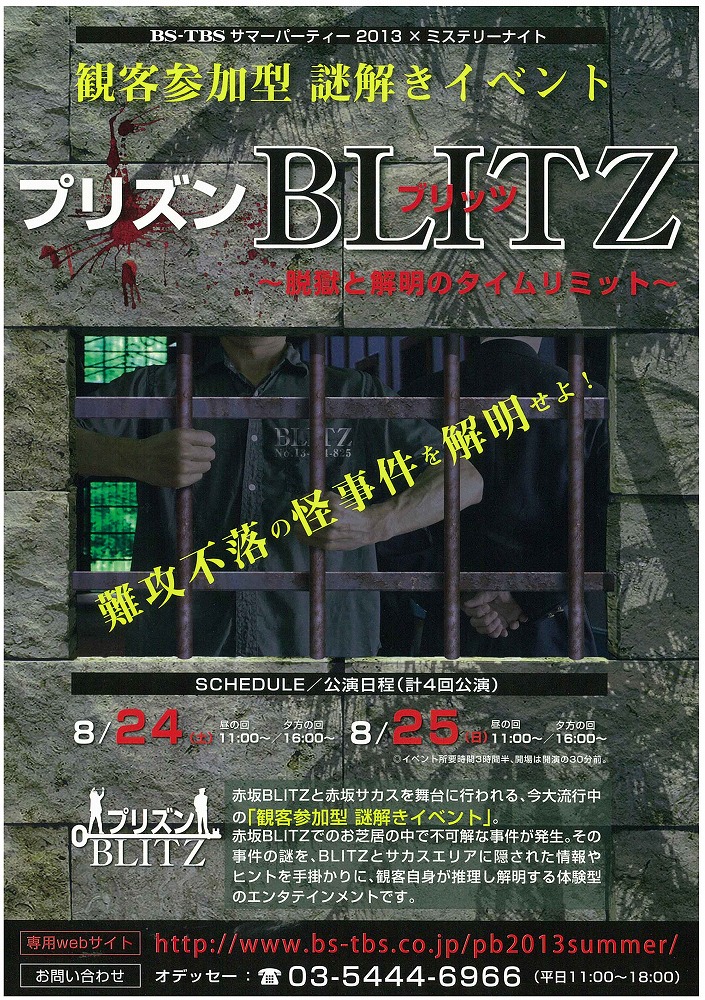 ■8月24日(土)・25日(日) 両日とも11:00開演と16:00開演 『プリズンBLITZ』