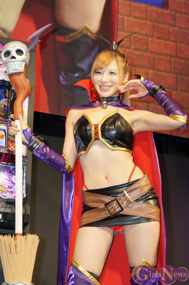 手島優さんはローズのセクシーコスチュームで登場し「すごくセクシーな衣装で、すみません昼間っから・・・。」と語るも「でも、大好きですよこういう衣装。このまま帰りたいくらい! ポイントはちょっと見えてるハイレグっぽいところです。」とニッコリ。