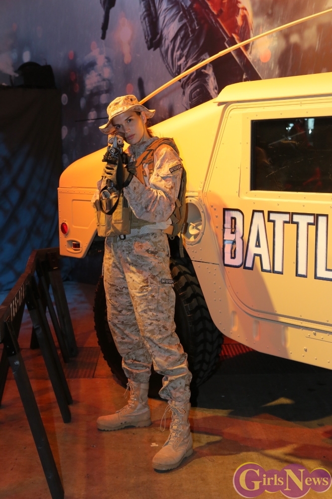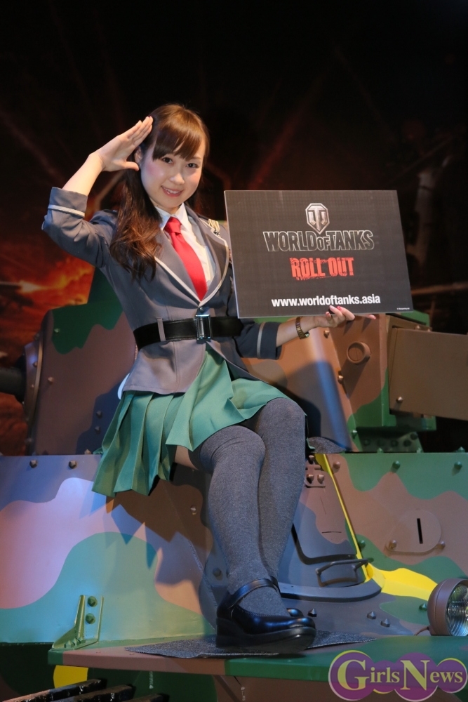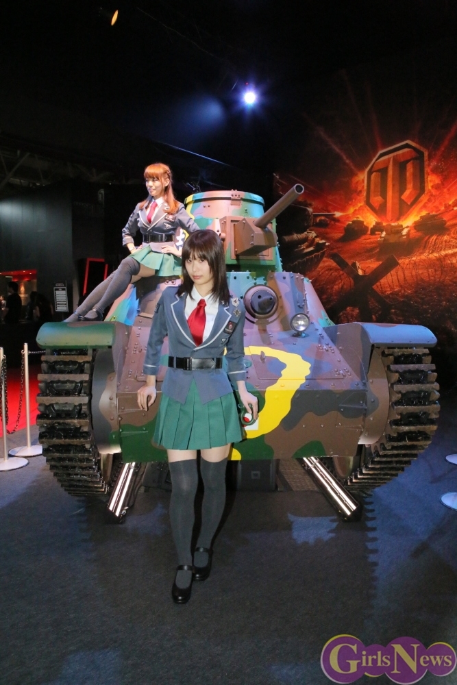 そして、同じくグラビアアイドルの倉持結香さんが「World of Tanks」ブースでセクシーミリタリー衣装でステージに登場している。九五式軽戦車のところでフォトセッションタイムも数回用意されているそうなので、激写して欲しい。