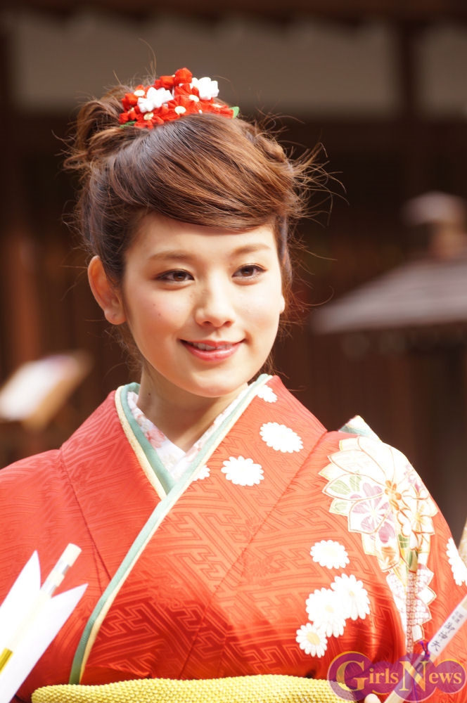 1月9日、プラチナムプロダクションの晴れ着お披露目会が乃木神社で行われ、成人となったグラビアアイドルの筧美和子さんが成人の日を前にひと足お先に晴れ着姿を披露した。