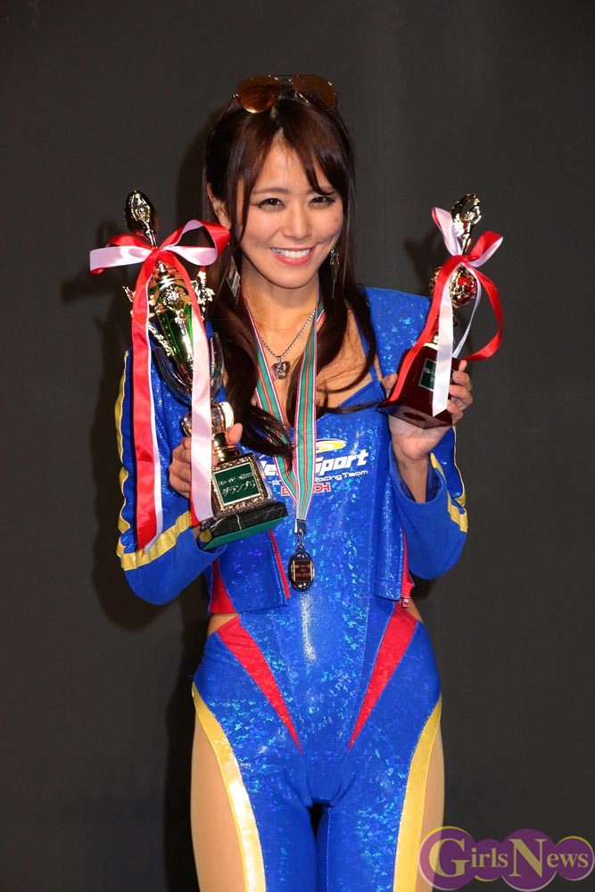 授賞式では、まず“新人グランプリ”の神谷まりなさん、小嶋千尋さん、荒井つかささんと、“コスチュームグランプリ”のウェッズスポーツ・レーシングチームの表彰が行われた。
