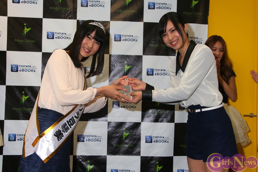 グランプリのトロフィーの授与は、初代「TSUTAYAプリンセス2013」の久宥茜さん、那月結衣さん、出水杏奈さんから「これからは3人で一緒になかよく頑張って!」と餞の言葉とともに贈られた。