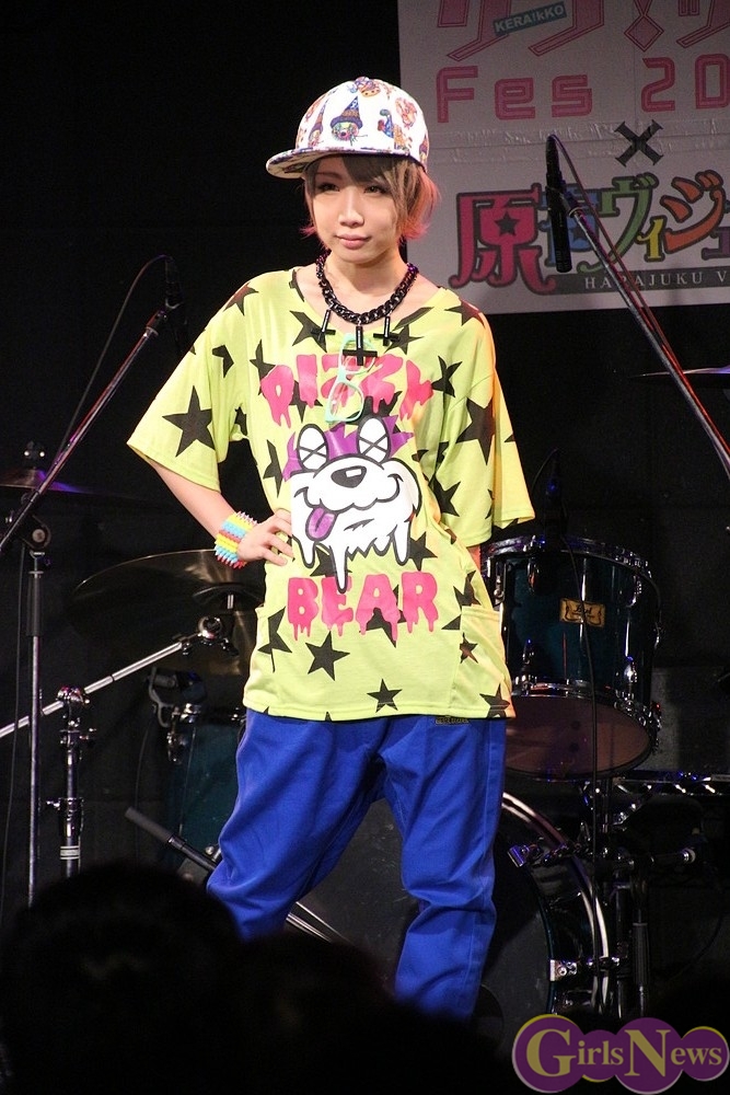 春奈るなさんは、ファッションショーにもモデルとして出演し、歌う時とはまた違った表情で観客を魅了した。ショーでは、原宿系ファッションリーダーで、春奈るなさんの着たライダースジャケットなどのオリジナルブランド服のプロデュースや、アニメ「スポチャン対決!~妖怪大決戦~」の声優など多彩な活躍ぶりの木村優さんなど、KERAを中心としたモデルさんが様々なファッションで登場し、原宿ファッションの奥の深さを伝えるものとなった。