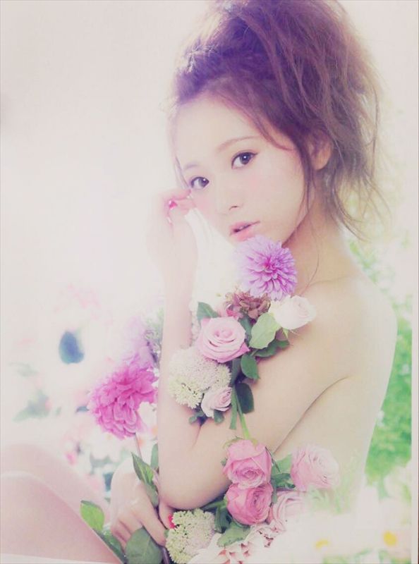 連載一回目は本人としても初めてのヌーディ―ショットで裸を花で囲んだビューティ―感あふれるカットになっている。