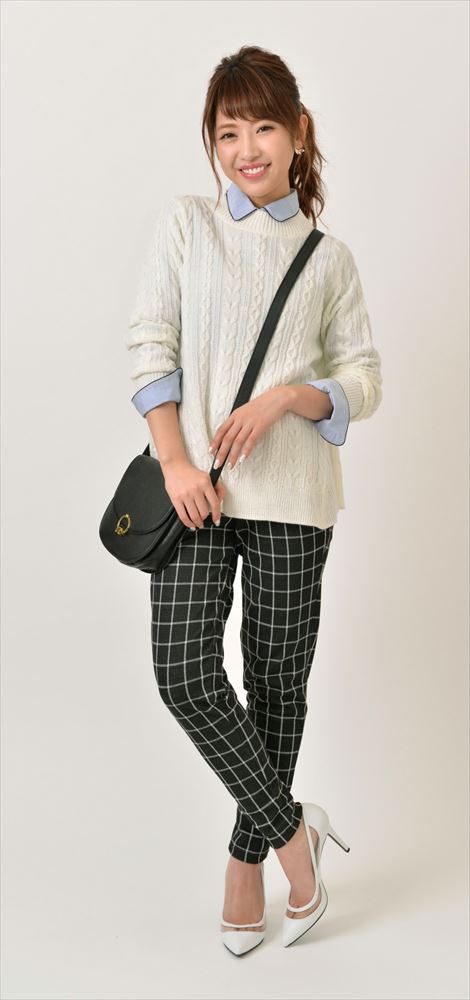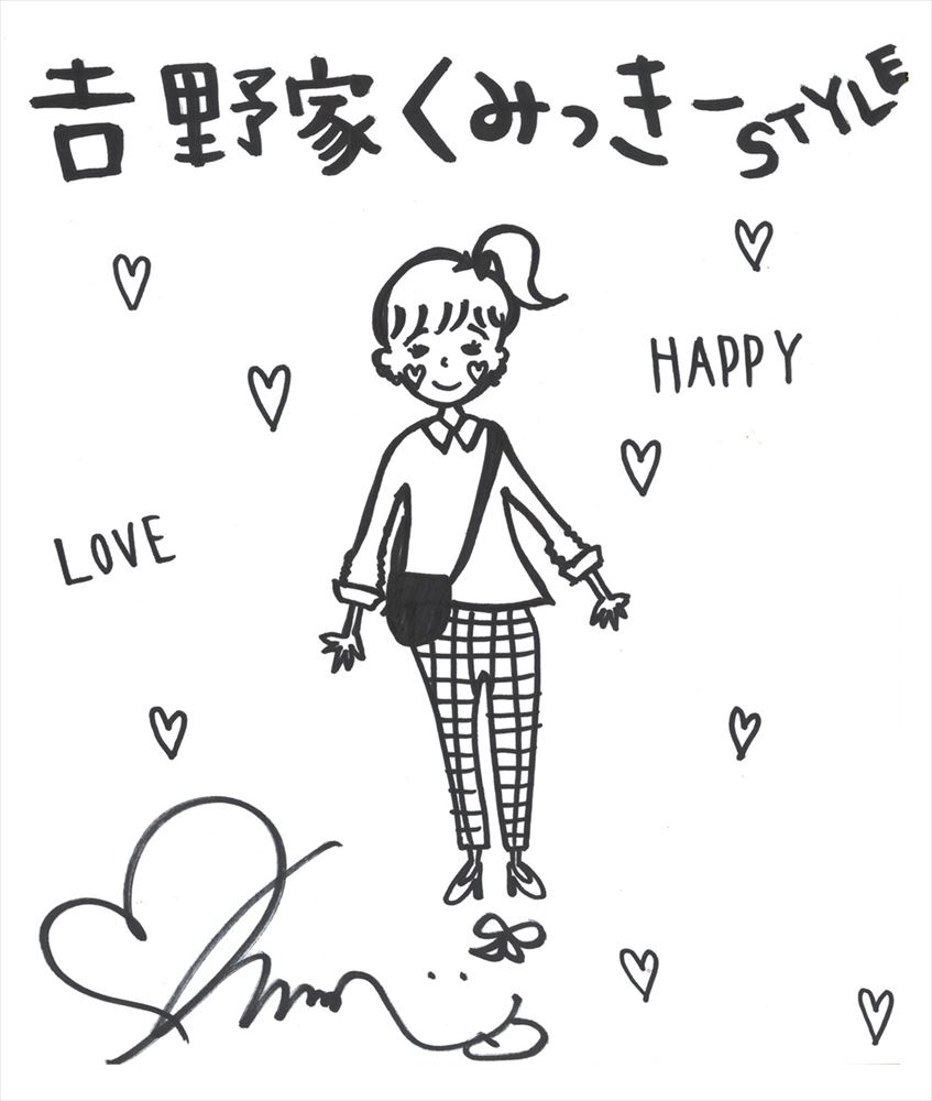 さらに本業に因んで、「吉野家さんのイメージが変わりました。ゆっくり食事してもいいことがわかったので、また友達と一緒に来たり、一人でもトライしてみようかと思います。一方で、吉野家さんって行ったことがないと、どんな服装で行けばいいのかわからない女性も多いのかなと思います。私もそうでした。そこで、『吉野家くみっきーファッション』を考えてみました!吉野家さんでの食事は、基本的に器を手に持って食べることが多いと思うんですけど、その時に邪魔にならないように、袖周りはあまり長いものじゃないほうがいいなと思います。髪が長い人は、まとめた方が食べるのに集中できますよ♡あとは、カウンター席に座ることを考えると、ロングスカートよりもパンツスタイルのほうが、なお良いですね。何といっても、一番のポイントはバッグですね!あまり大きいバッグだと、座る時に置く場所が無いし、人にぶつかってしまうこともあるので、小さめで肩からかけたまま食事ができるタイプを選びました。どのような服で行ったら良いかわからないという女性に、参考にしてもらえたら、と思います」と吉野家ファッションを提案した。