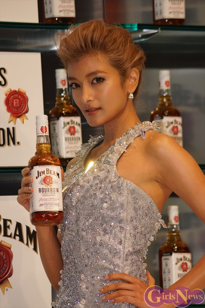1月28日、世界No.1バーボンウィスキー「ジムビーム」の戦略説明会が表参道ヒルズにて行われ、昨年よりCMキャラクターを務める人気モデルのローラさんが登場した。