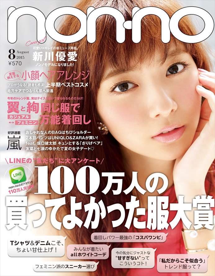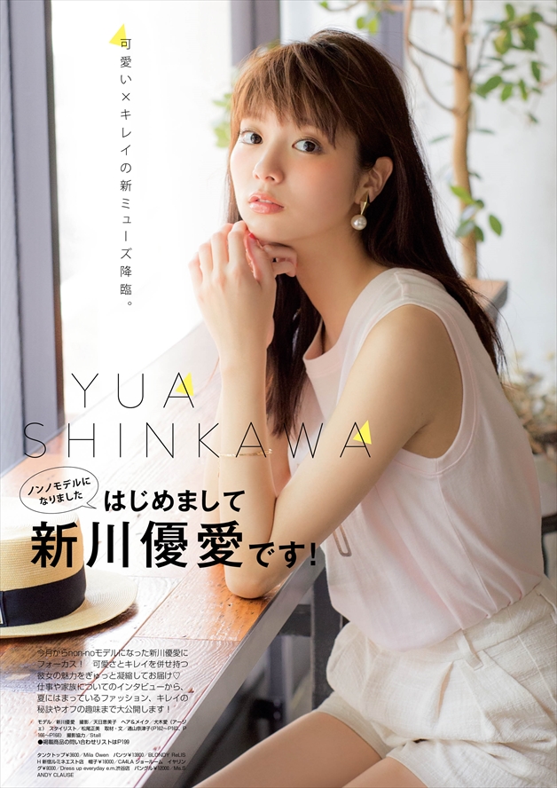 6月20日に発売される「non・no」8月号で、モデルで女優の新川優愛さんが初登場で初表紙に起用され「non・no」モデルデビューする。