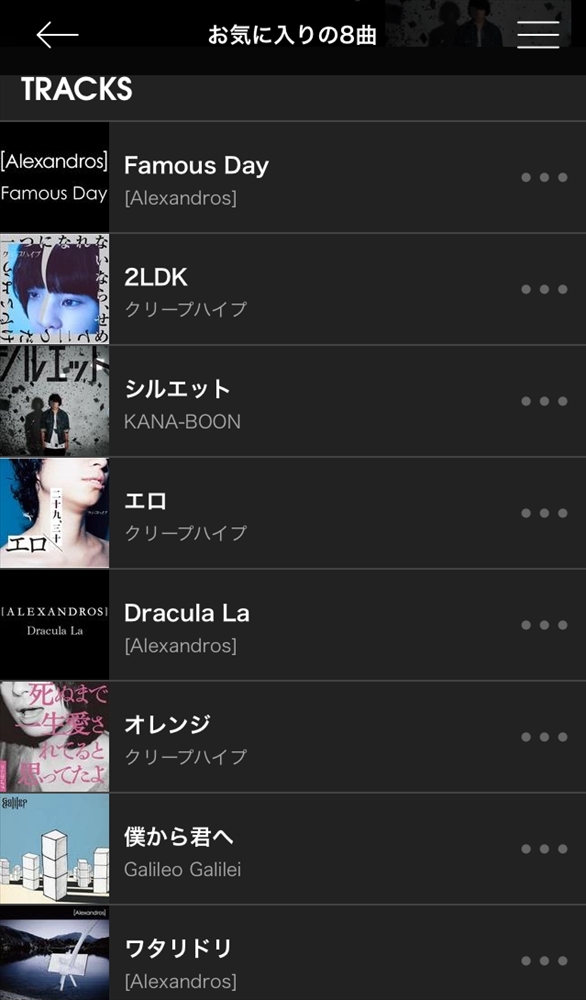特に『お気に入りの8曲』には、[Alexandros]、KANA-BOON、androp、クリープハイプ、GalileoGalilei、といった各地のロックフェスにひっぱりだこなロックバンドの楽曲が並んでいる。