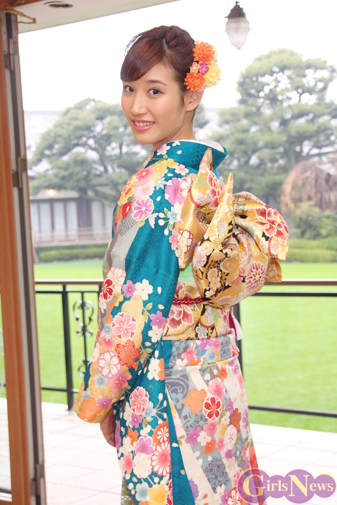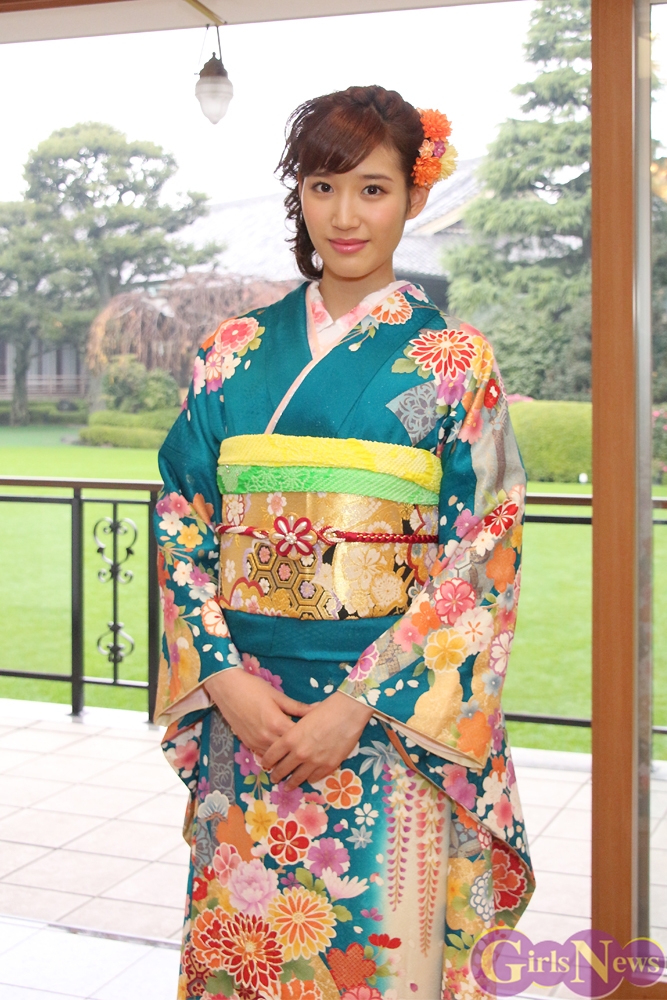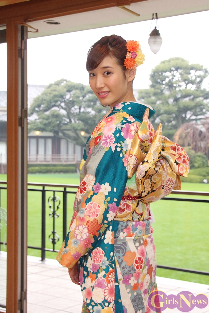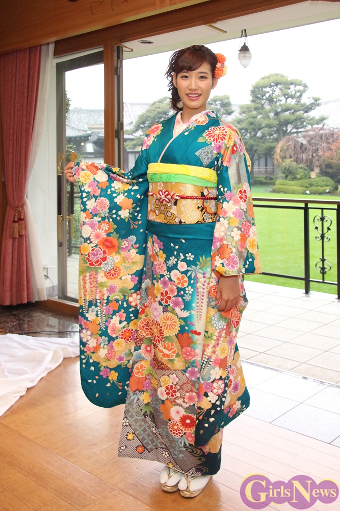 いつもは革ジャンでクールなイメージが強い花岡さんだが、翠緑の振り袖を着た感想を「久しぶりに着てとても可愛い着物で嬉しい」とコメントした。